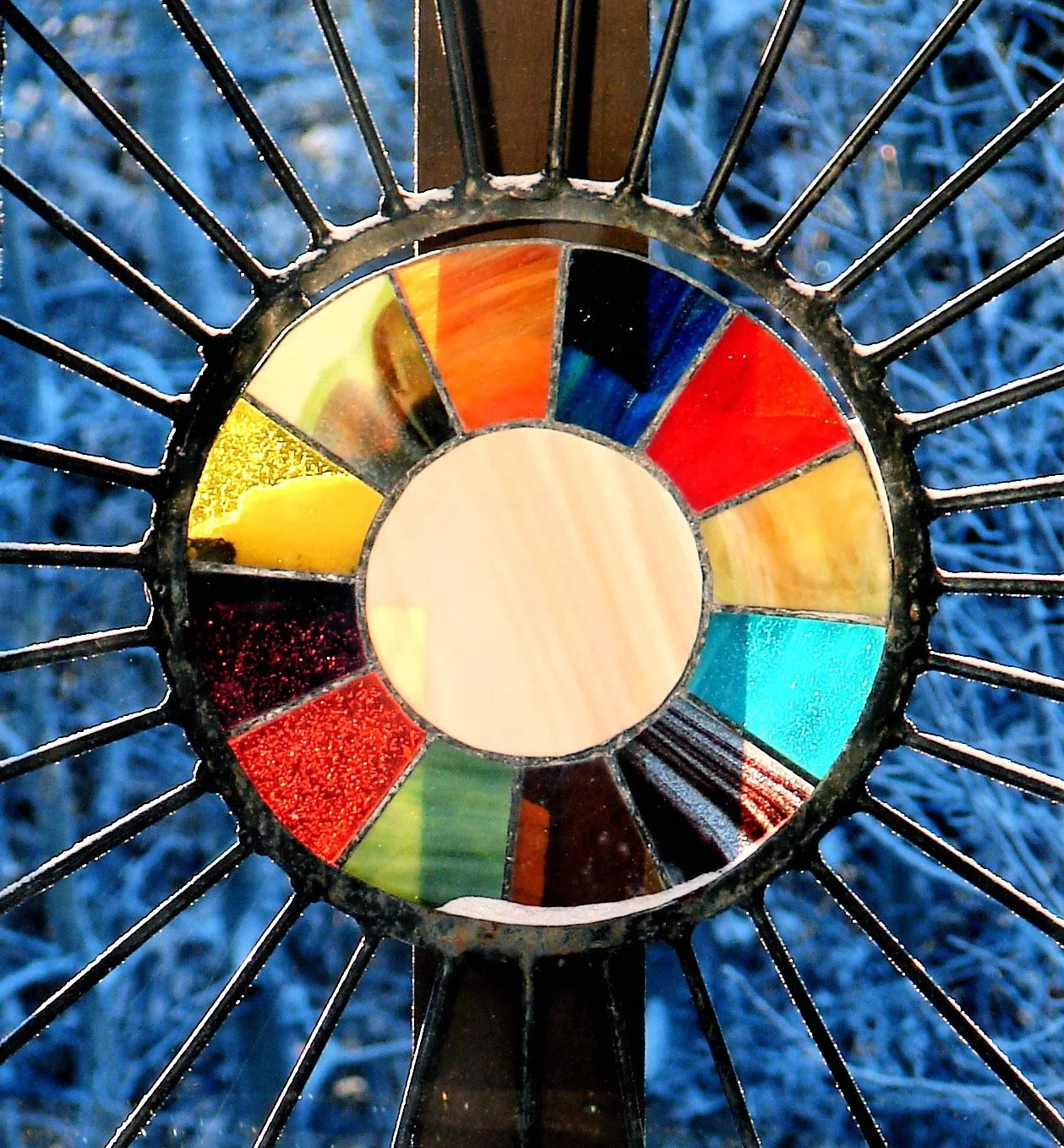 With stained glass, Iāve always loved how the same piece can look so utterly different depending on the time of day or time of year. Working with glass allows me to continuously delight in the varied ways colour and texture interact with light whether coming from an interior source or light from outside.