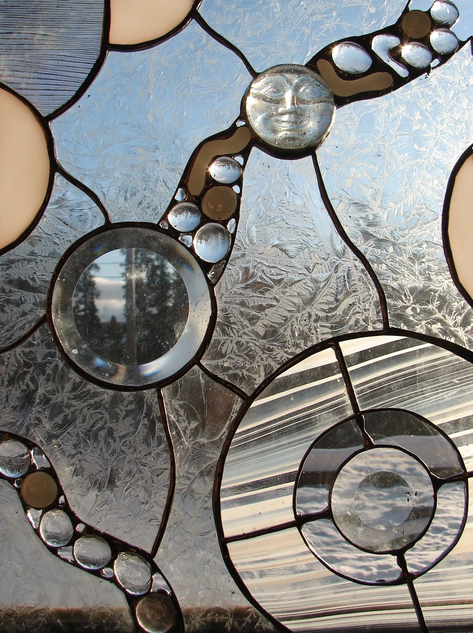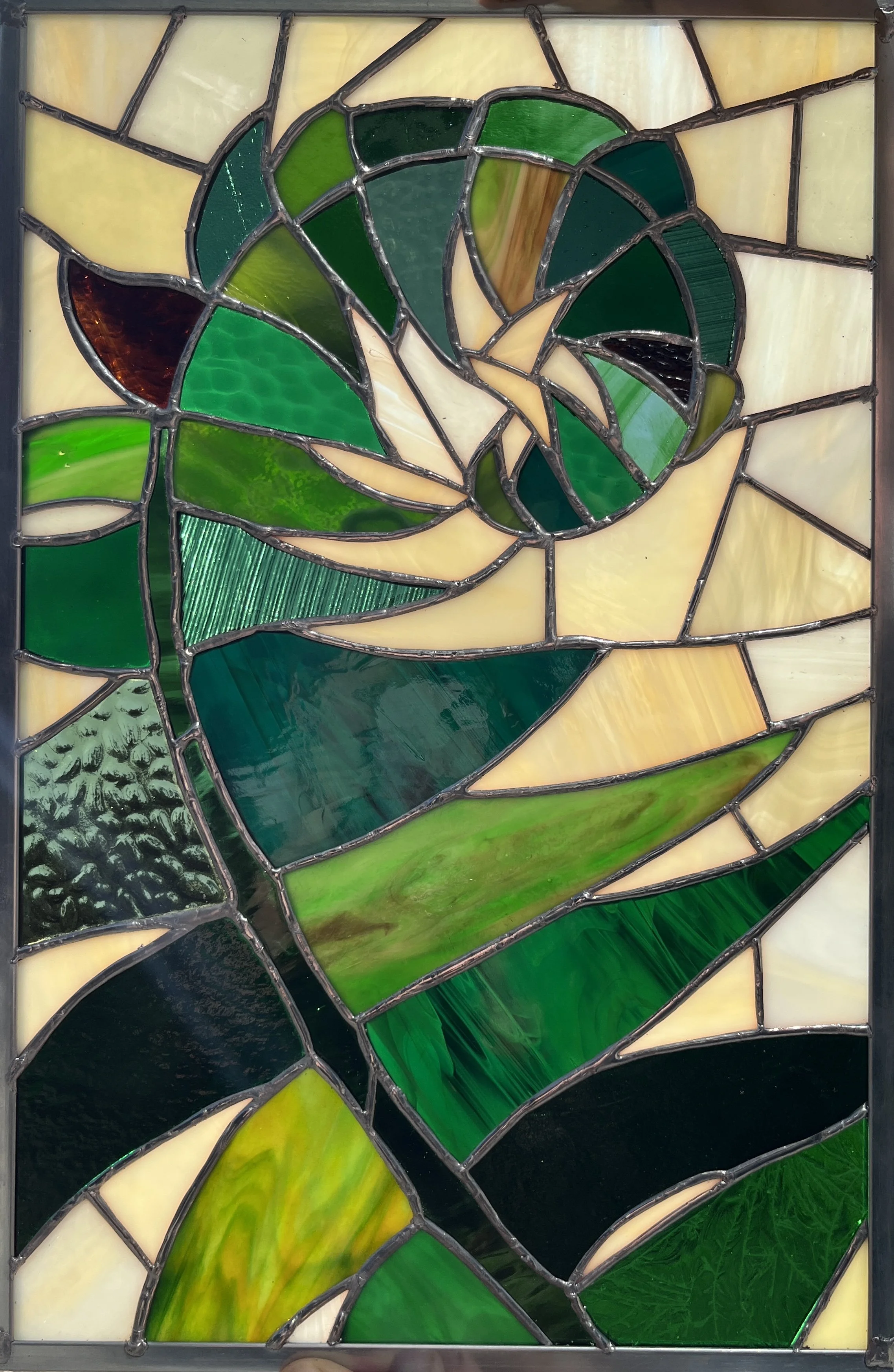 I had many excellent teachers when I first started learning stained glass in the remote northern town of Whitehorse Yukon. Jeanine Baker was my first teacher and from her Iām very grateful to have learned the foundations of stained glass. Carmen Komish had a small supply shop at the time and she also offered classes that were very helpful in getting started. Finally Mike the Stained Glass Guy was always very generous with his time and expertise. Many thanks to all these wonderful teachers!